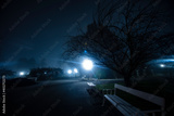 misty night in the city park