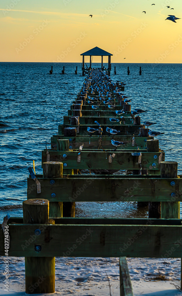 Multiple walking picnic piers broken up and destroyed by Hurricanes in the Gulfport-Biloxi area..