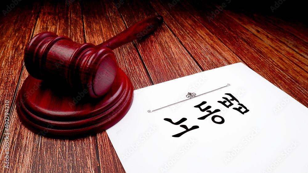 Law and Justice, Legality concept, Judge gavel and documents written in the labor law on a wood table. (Translation: Labor Law)