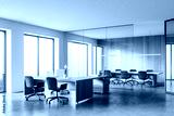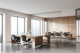 Modern wooden and white open space office corner