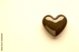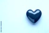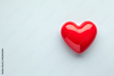Valentine's day concept with red heart on light blue background, top view, copy space.