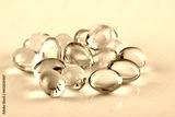 Vitamin D capsules on white background. Omega 3.
