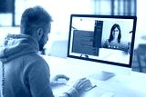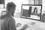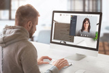 Freelancer communicates with the employer online. Work desk with modern computer. Work at home concept.