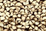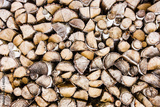 Tree cut cross section texture. Wood industry background. Chopped wood texture. Stacked tree logs pattern. Pile of raw tree wood in forest. Firewood background.