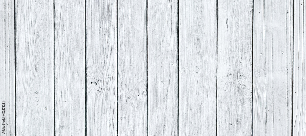 Panoramic wood texture. Wooden desk pattern. White wood panoramic view. Rustic tree desk with knots pattern. Countryside architecture wall. Village building construction. Wood industry texture.