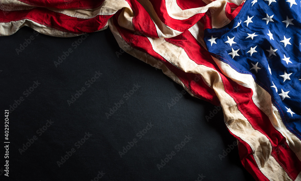Martin Luther King Day anniversary concept. American flag against black wooden background