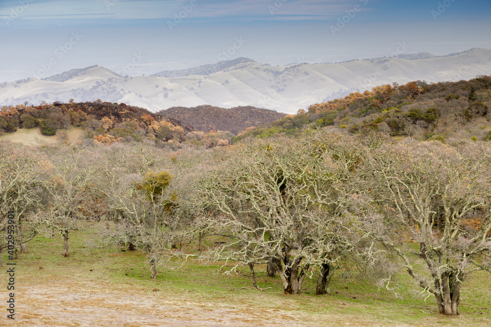 Blue Oaks, Rolling Hills, Diablo Range, and California Central Valley views via Livermore. Morgan Territory Regional Preserve, Contra Costa County, California, USA.