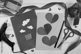 Valentines diy. Step by step instruction for handmade valentine greeting card with parachute from hearts. Craft gift, flat lay. step 2