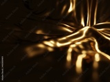 3D rendering of a gold crumpled fabric in the dark