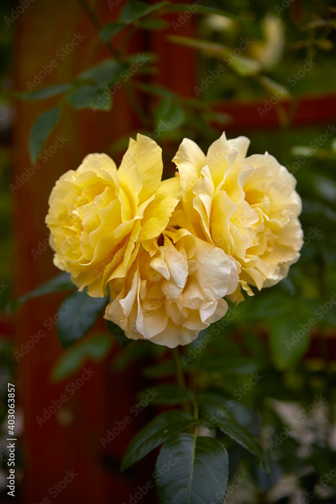Beautiful perfect yellow roses as a close-up.