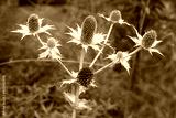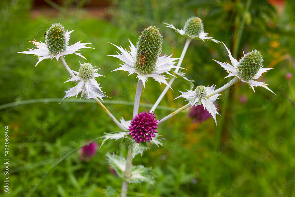 Beautiful other ivory thistle, (eryngium giganteum), close-up.