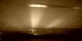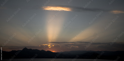 high mountains hills at sunset, panoramic view of the sky. the sea washes the coast in straight lines. screen saver on the screen