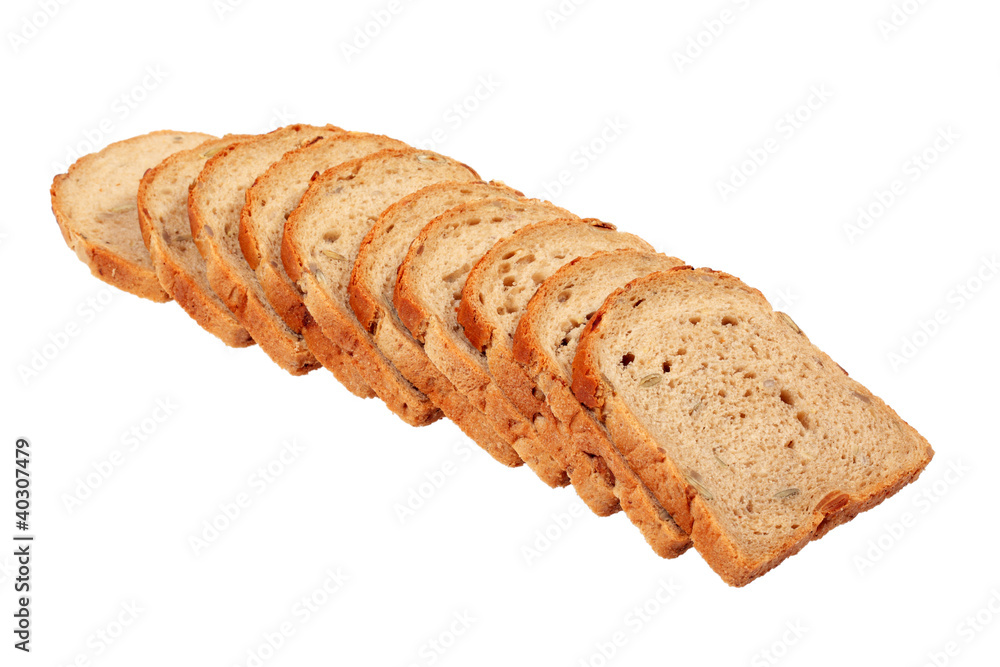 Sliced loaf of bread with pumpkin seeds isolated over white
