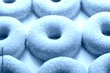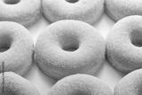 Sugar donuts on a white background, close up view