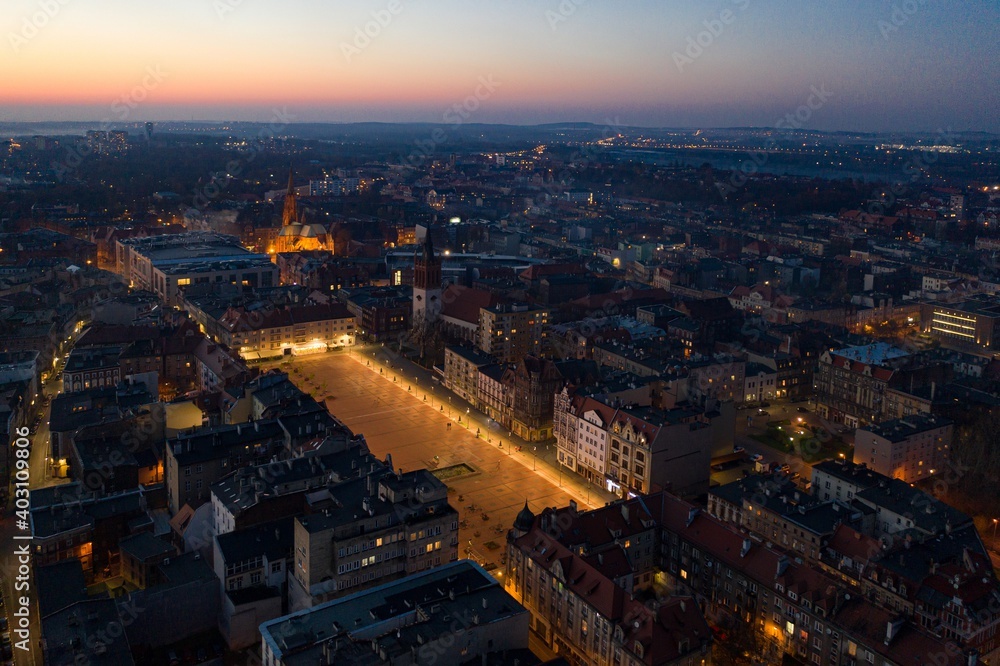 Aerial drone view on Bytom city at evening. Bytom, Silesia, Poland