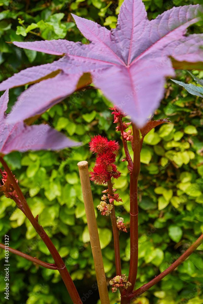Beautiful close-up of a miracle tree, (ricinus communis).