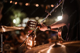The musicians were playing rock music on stage, there was an audience full of people watching the concert. Concert,mini concert and music festivals.