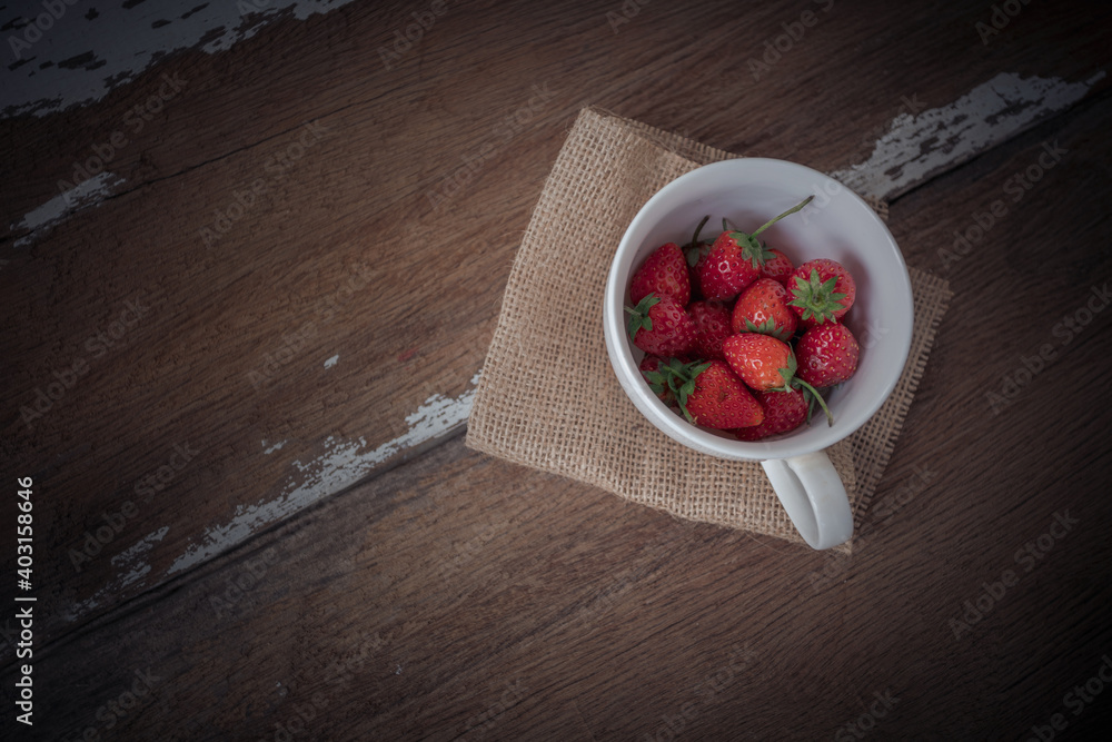 Strawberry on old wooden background, love and valentine theme