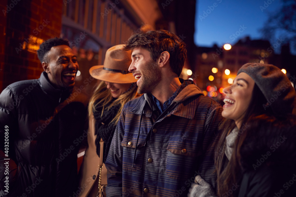 Group Of Friends In City Outdoors On Night Out Together