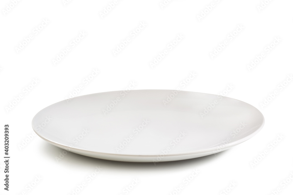 Plate, Top View of Empty Flat White Dish for Food – HQ Macro Close-Up – Isolated on White Background