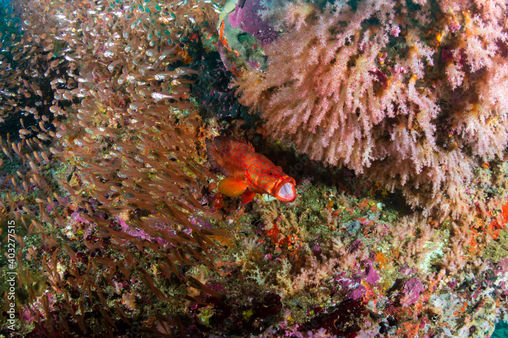 Colorful Coral Grouper on a tropical coral reef system in Thailand