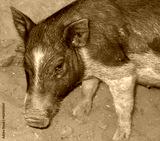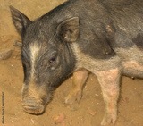 Black and white hairy indian pig from Goa