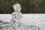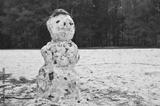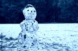 Snowman on cloudy winter day
