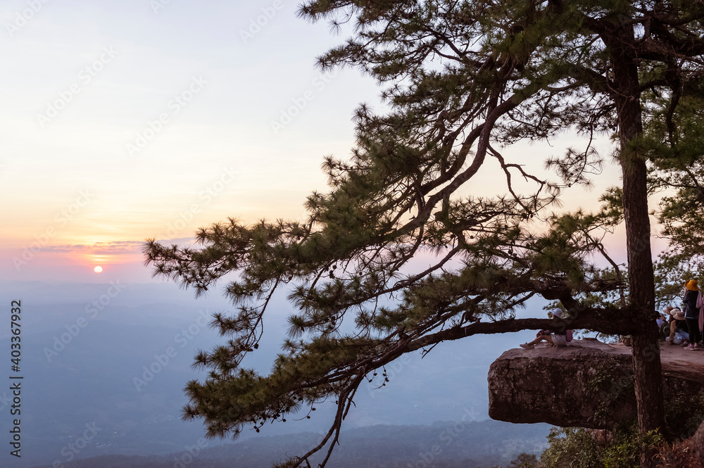 Sunset at Pha Lomsak Cliff view point of Phu Kradueng National Park