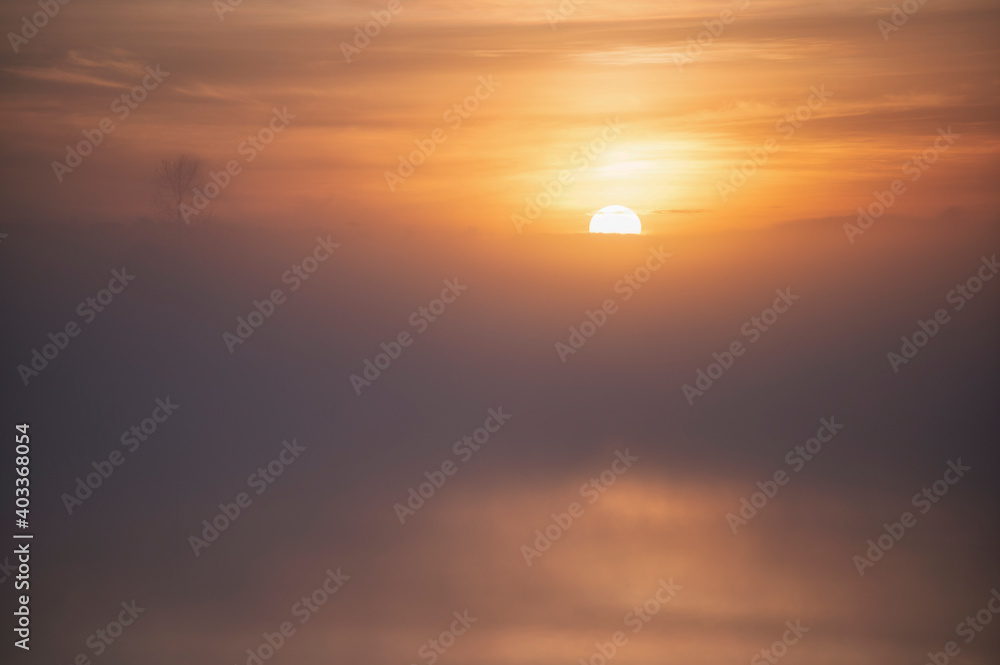Sunrise over the river with foggy at Wang Kwang Reservoir Phu Kradueng National Park, Loei, Thailand