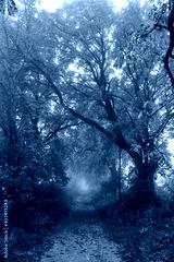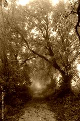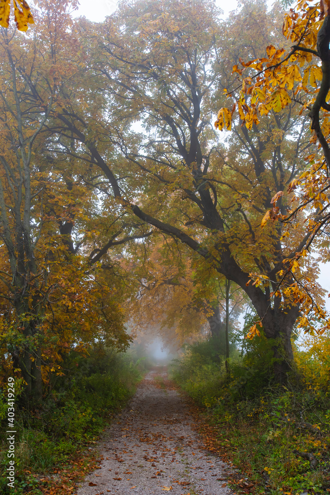 path in misty autumn forest