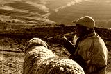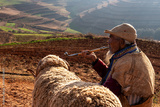 An old man sit with a sheep
