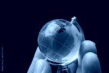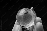 World globe crystal glass in hand. Global business and economy. Environmental or ecology concept