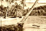 tropical island with palm trees and coconuts