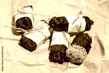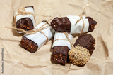 Mexican amaranth sweets and a peanut bar in chocolate on a wooden table. Sugarless. Vegan desserts