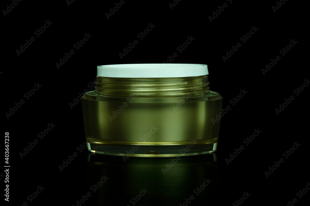 Mockup empty luxury golden cream jar for skincare and beauty skin is uncover, isolated on black background with clipping path.