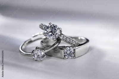 Selective focus closeup of elegant diamond rings