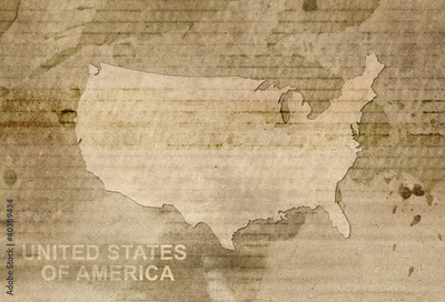 USA map old style. America border vintage paper