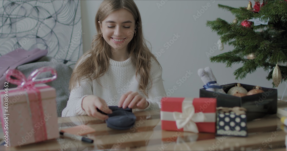 Woman wrapping presents gift box