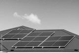 New solar panels installed on metal sheet roof of the house in South Australia against clear blue sky with a small cloud