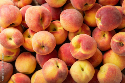 fresh peaches as background, top view