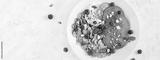 Bowl of flakes with yogurt, blueberryes and persimmon on white wooden table. Fitness food. Overhead, top view, banner