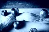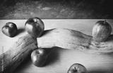 red apples and an old branch on a blue plane and dark background