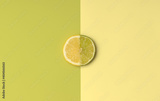 Half Lemon and Lime slice with green and yellow color opposite for spring or summer background. Minimal flatlay concept.