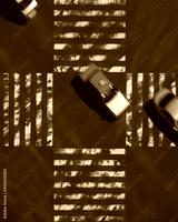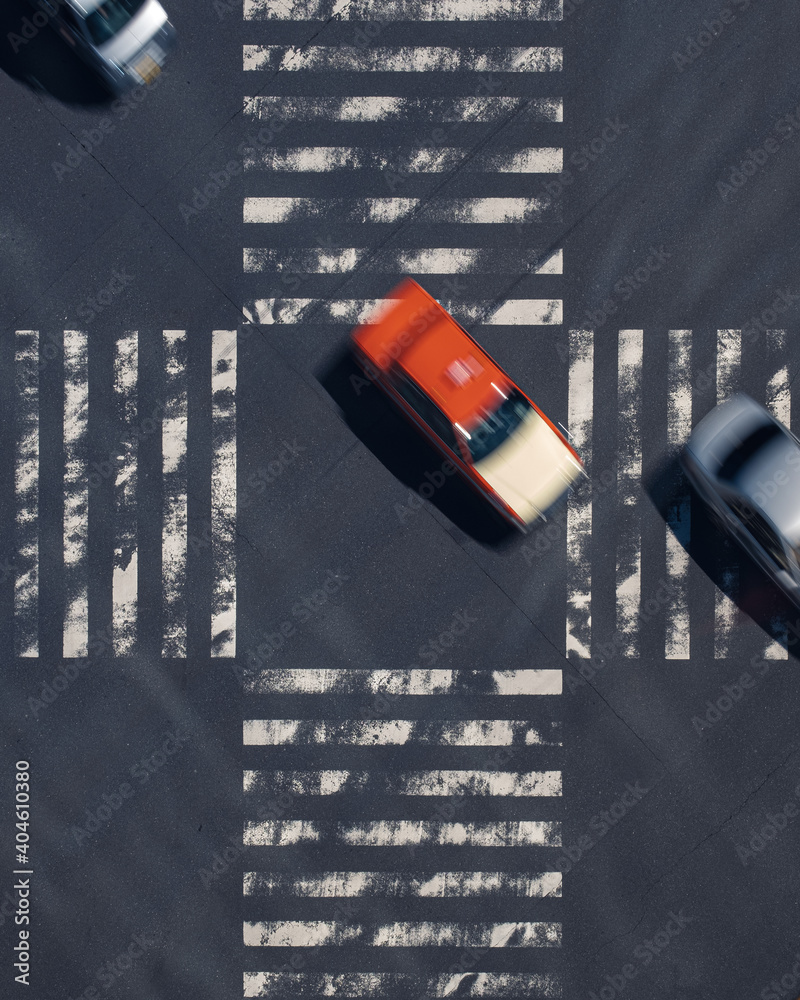 vertical photo of a blurry orange taxi at a busy Japan Tokyo street at a zebra crossing taken from above.