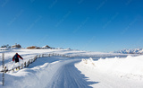 The road in the high mountains, completely covered by snow.