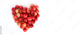 heart from red berries of sweet cherry on a light surface top view. big sweet love