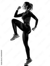 one caucasian beautiful woman runner running jogger jogging stretching warming up in jumpsuit winter clothes isolated on white background