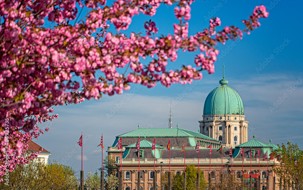 Amazing spring cityscape with Buda Castle Royal Palace in Buda Castle district