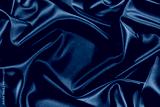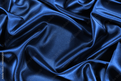 Blue silk satin background. Shiny fabric with wavy folds. Beautiful fabric background with empty space for your design.