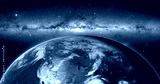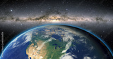 View of the planet Earth from space during a sunrise against milkyway galaxy "Elements of this image furnished by NASA "